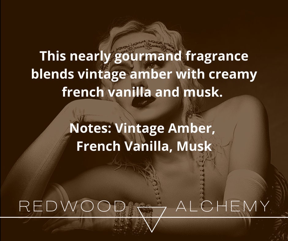 "A bespoke customer wanted something deeply feminine yet powerful, reminiscent of the strong women you see on the silver screen. Classy, vintage and strong. An homage to strong, powerful women. I wanted to deliver something with a vintage feel so I used the known vintage amber formula as a jumping point, and added a French vanilla twist."
