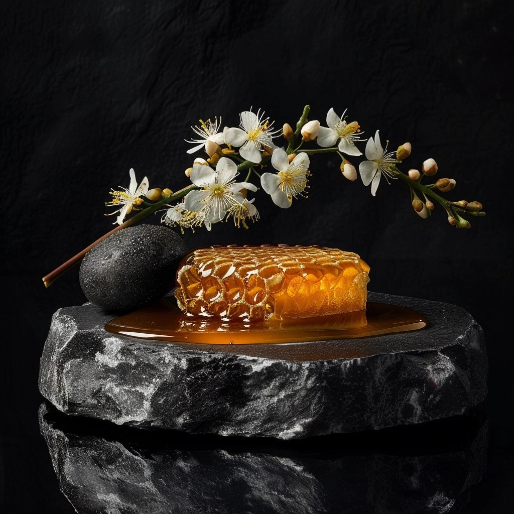 Black Honey is a rich and indulgent narcotic fragrance that envelops you in the sweet allure of honey. The scent opens with a burst of juicy peach, crisp green apple, and zesty grapefruit, leading to a heart of golden honey blended with creamy coconut and delicate jasmine. The base notes of warm musk, smooth sandalwood, and amber create a deep, comforting finish that lingers on the skin, making Black Honey an irresistible and luxurious treat for the senses.