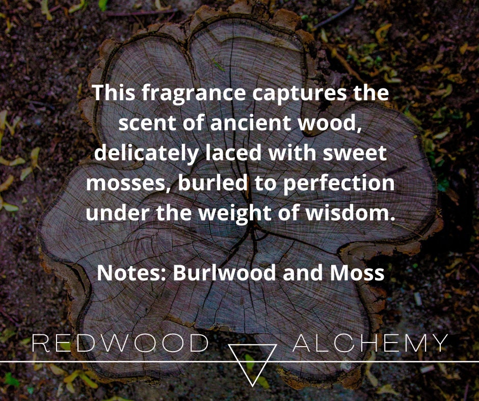 This fragrance captures the scent of ancient wood, delicately laced with sweet mosses and burled to perfection under the weight of wisdom.