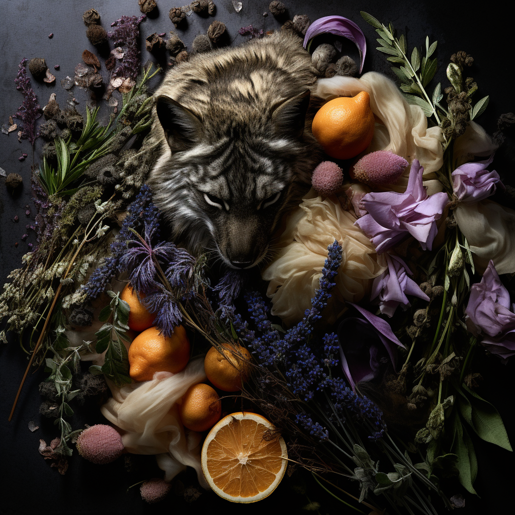 Embark on a sensory journey with Feast & Fur, where the untamed and the delectable converge. The fragrance opens with a provocative blend of anise, carom seed, rosemary, and a touch of bitter wormwood, lifted by the bright notes of grapefruit and bergamot. This captivating introduction sets the stage for an olfactory adventure that is both wild and enticing.