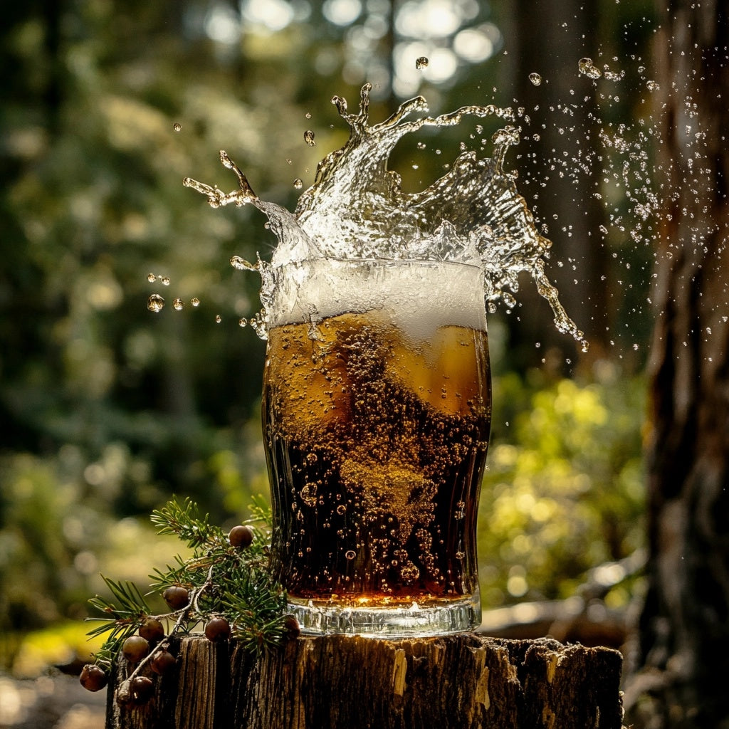 Juniper Fizz opens with a nostalgic cola sparkle, sharpened by citrus and dry botanical herbs. It hums with crisp energy - cool like tonic, wild like forest gin.